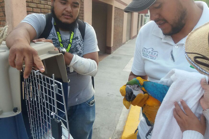 Rescatan un papagayo encontrado en vía pública en Morelia