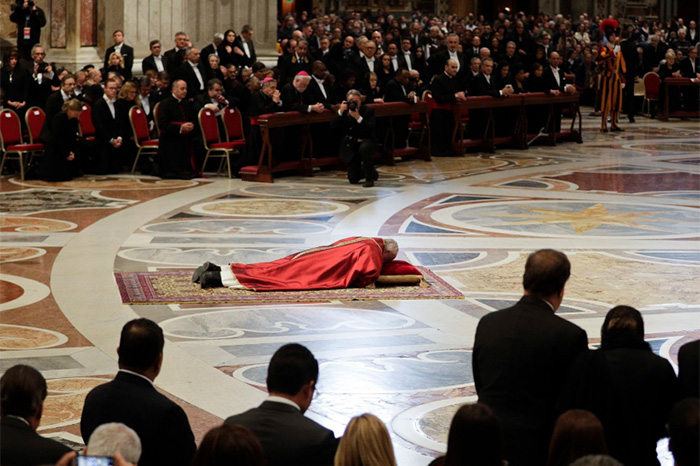 En Viernes Santo el Papa se postra y evoca la pasión de Cristo (video)