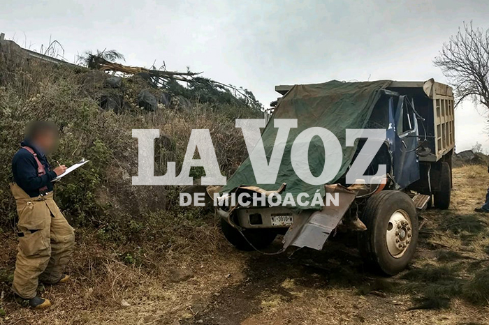 Vuelca camión de carga en la Morelia-Pátzcuaro