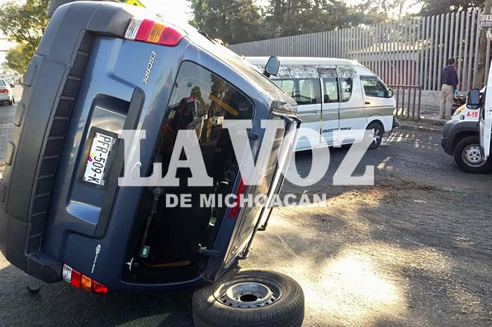 Choque-volcadura entre combi y camioneta deja dos heridos