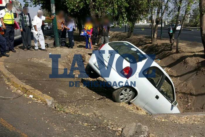 Cae automóvil a un canal en Morelia; un lesionado
