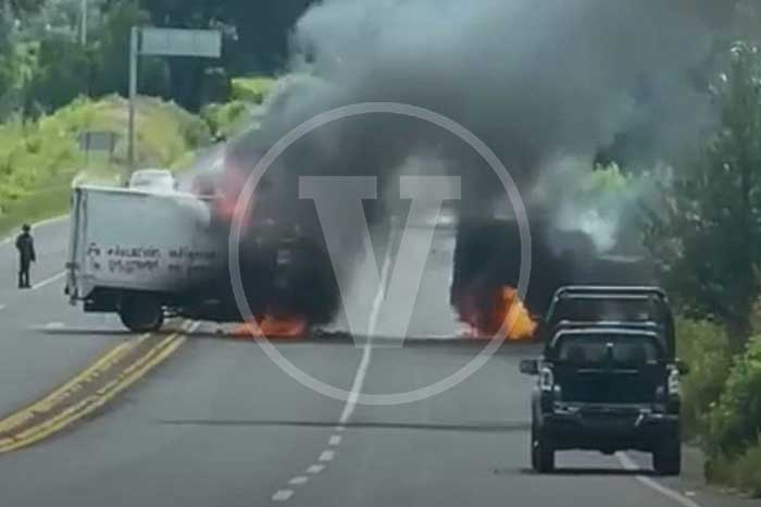 Presuntos normalistas incendian dos vehículos en el crucero a Purépero