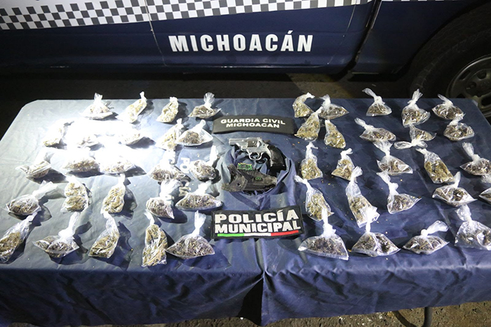 Aseguran a dos personas en posesión de un arma de fuego y 49 envoltorios de droga, en Zamora