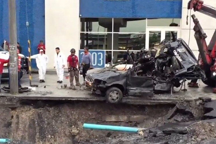 Cae vehículo a socavón en NL; una mujer se encuentra desaparecida