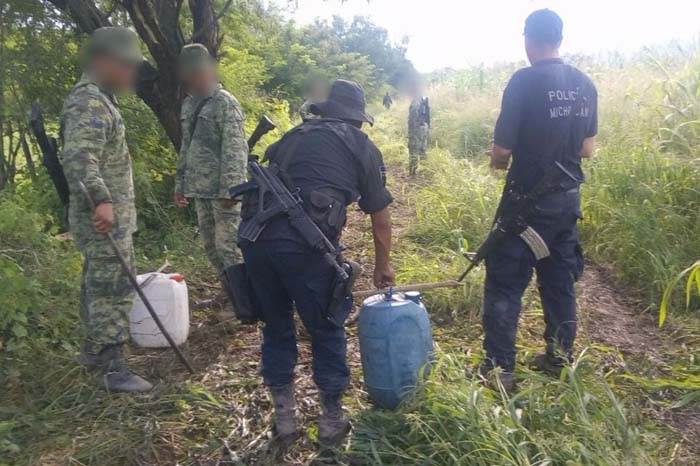 Destruyen laboratorio de droga sintética en Aguililla