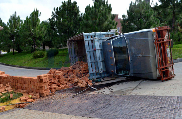Vuelca camioneta en fraccionamiento Bosque Monarca