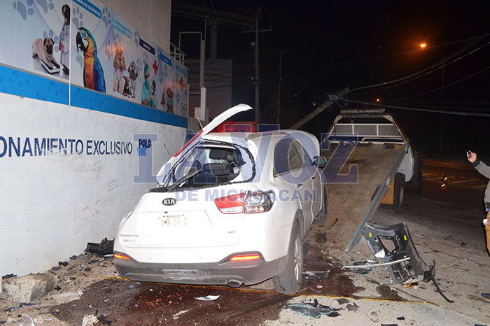 Camioneta se impacta contra poste y se mete en estacionamiento