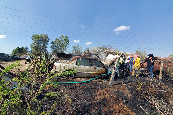 Incendio de pastizal alcanza auto en corralón policial al oriente de Morelia