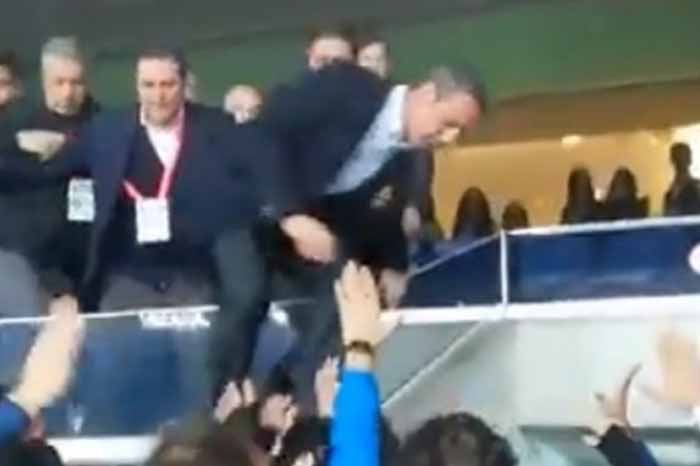 Presidente del Fenerbahce se baja del palco a golpearse con aficionados