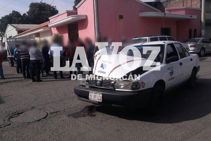 Choca taxi contra camioneta, una mujer herida