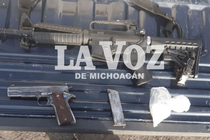 Autoridades aseguran armas, droga y vehículo en Apatzingán