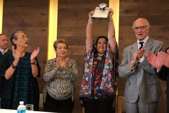 Notimex/La Voz de Michoacán Ciudad de México. La cocinera michoacana Blanca Estela Vidales de Lemus recibió el reconocimiento al mérito gastronómico El Molcajete de Plata, en su quinta edición, en donde fue homenajeada por sus 37 años de carrera profesional. Este galardón lo recibió de manos de la cocinera veracruzana Carmen “Titita” Ramírez, junto a los consejeros fundadores y miembros de Cofradía de Gourmets Zona Rosa, René Martínez y José Mayora. Agradecimiento a cada uno de los que colaboraron para que esto se instituyera, la cocina mexicana es patrimonio de la humanidad, por eso me siento orgullosa de ser de un estado maravilloso que es Michoacán”, declaró la ganadora. Vidales de Lemus, quien es propietaria del restaurante “La Mesa de Blanca" y miembro del Seminario de Cultura Mexicana en Uruapan, exhortó a todos a dignificarse por medio del arte culinario que existe en toda la República Mexicana. Por su parte Mayora, en su intervención dijo que este premio nació en el año del 2013 para reconocer la trayectoria de investigadores, expertos culinarios, escritores, cocineros, chefs que han dedicado su talento y esfuerzo, al rescate, difusión, preservación de la auténtica comida mexicana. Dijo que El Molcajete de Plata está respaldado por cuatro organismos: El Club de Industriales, la Academia Mexicana de Gastronomía, la Cofradía de Gourmets Zona Rosa y la Asociación Mexicana de Restaurantes. Para festejar a la galardonada ofrecieron una comida con miniaturas de taquitos de pollo, degustación de salsa de cacahuate con pollo, miniatura de guacamole y miniatura de ensalada de nopal como entrada, chilatole oaxaqueño, el filete de tilapia en guisado de jitomate. El postre corrió a cargo del chef Rodrigo Flores de la Hacienda de los Morales, quien presentó buñuelos rellenos con dulce de guayaba.