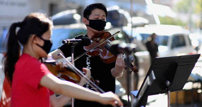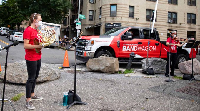 Con la temporada de otoño cancelada y la sala cerrada debido a la pandemia del coronavirus, los músicos han tomado una camioneta y salido en búsqueda de un público a quien tocar.