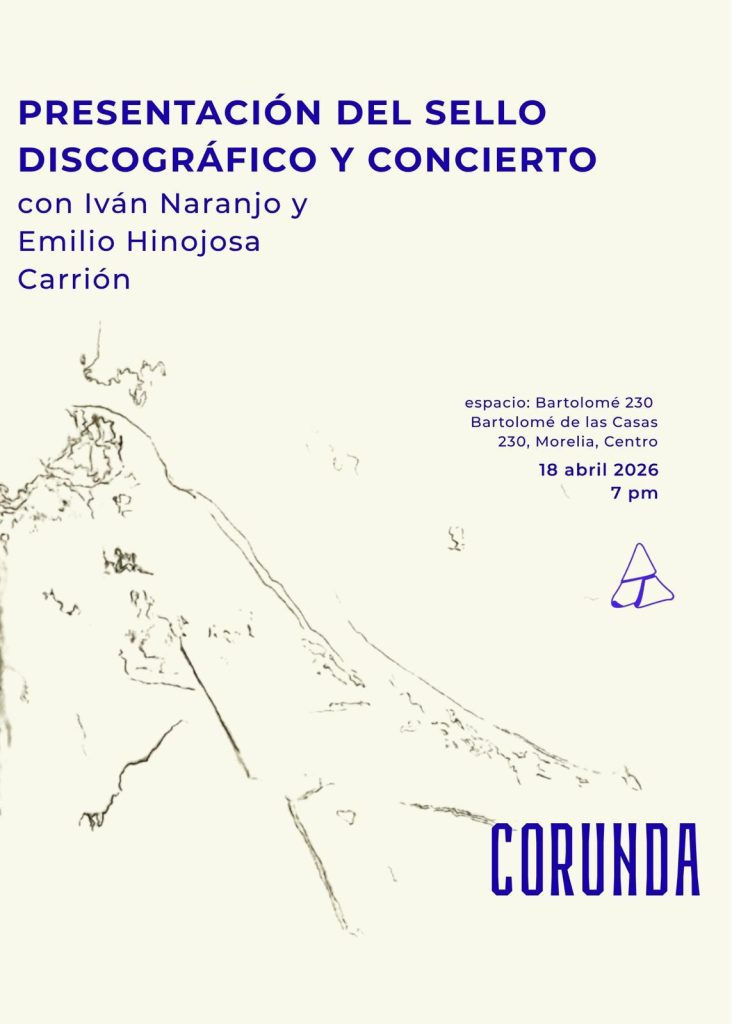 Huella Digital, colaborador La Voz de Michoacán En noviembre del 2025 nace Corunda, sello de músicas experimentales independiente, un esfuerzo de los compositores Iván Naranjo y Emilio Hinojosa Carrión, en mancuerna con Alta-Voz Social y Cultural y Benjamín Morales. Un sello que nace con el fin de documentar de manera profesional la riquísimas escenas de música experimental, música contemporánea de concierto, la improvisación libre, el arte sonoro, y otras prácticas musicales que operan más allá de la industria musical; que apuesta por los formatos físicos y por alternativas justas de streaming y que responde a la necesidad de propiciar una escucha más atenta y menos mediada por la lógica algorítmica que domina las plataformas digitales. Este próximo 18 de abril 2026 se presentarán los primeros dos discos publicados por Corunda: How to play music de Emilio Hinojosa Carrión y el disco doble “Mineral / Superficies de tiempo” de Iván Naranjo, con presencia de los compositores y también fundadores de Corunda, quienes además presentarán un concierto con piezas de su autoría. Fecha: sábado 18 de abril, 2026 Lugar: Bartolomé 230 - Bartolomé de las Casas 230, Morelia, Michoacán. Centro Histórico. Hora: 19:00 hrs. Enlaces sobre los discos y la disquera: https://www.latempestad.mx/corunda-sello-musical https://www.latempestad.mx/ivan-naranjo-mineral-superficies-de-tiempo-corunda https://sonuslitterarum.mx/la-escucha-como-montaje Emilio Hinojosa Carrión, Ciudad de México, 1984 Compositor con estudios en el Conservatorio Chaikovsky de Moscú. Su práctica transita entre la música de cámara, la electroacústica, la instalación sonora y el documental. Con una presencia constante en museos, galerías y espacios culturales de todo el país, ha desarrollado proyectos en colaboración con artistas visuales, instrumentistas e investigadores de distintas disciplinas. Su obra ha sido comisionada por algunos de los ensambles de música contemporánea más activos de México y respaldada por instituciones culturales nacionales. Es cofundador de Vano Sonoro, plataforma dedicada a la cultura de la escucha, y del sello discográfico Corunda, orientado a la difusión de la música experimental mexicana. Forma parte de Svilova, colectivo de documental sonoro. Iván Naranjo, Morelia, 1977 Estudió en el Conservatorio de las Rosas, tiene una maestría en Música Experimental por Wesleyan University, y es Doctor en Composición por Stanford University. Gran parte de su trabajo está escrito para ensambles de cámara, pero se extiende a la instalación, la composición algorítmica, la electrónica en vivo y la improvisación. Sus principales maestros de composición han sido Germán Romero, Ron Kuivila, Erik Ulman y Brian Ferneyhough. Su música ha sido interpretada por la LA Philharmonic, Arditti Quartet, Jack Quartet, Mivos Quartet, FLUX Quartet, Spektral Quartet, Retro Disco, Liminar, Ensamble Cepromusic, Laboratorio Música Nueva, International Contemporary Ensemble (ICE), Dal Niente, Distractfold, Adapter, entre otros, en numerosos países de América y Europa. Ha sido miembro del Sistema Nacional de Creadores de Arte (SNCA) [2014 y 2021], y fue, del 2018 al 2020, Coordinador de Tecnologías Aplicadas a la Creación Musical, para el Centro de Producción y Experimentación de Música Contemporánea (Cepromusic). Es beneficiario de PECDA Michoacán 2025. Es miembro de los ensambles Mice Corpus, Fear of the Object, el dúo Chris Cogburn-Iván Naranjo y el dúo Helicoidal, con Leonardo Chávez. También ha participado en proyectos colaborativos con Iliana Ortega, Aura Arreola, Ale de la Puente, Aliona Pankina, Valentina Díaz, Emilio Hinojosa, Daniel Monroy y Sofia Escamilla, entre otros. Es co-fundador del sello Corunda, que en 2025 publicó su disco doble Mineral / Superficies de tiempo. Actualmente acompaña su práctica musical con la docencia y la fotografía. Es profesor de análisis, composición y composición algorítmica con SuperCollider en la Academia de Arte de Florencia, en la Ciudad de México.