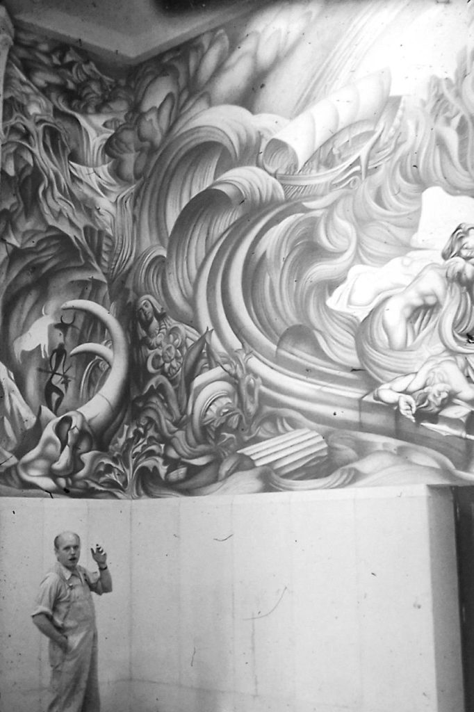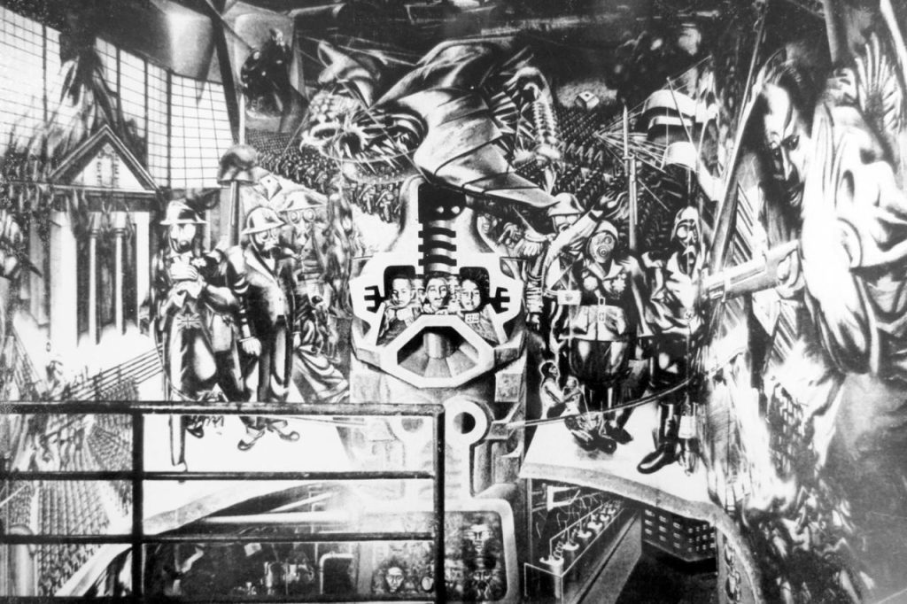 En su libro, Dulze explica todas las peripecias, los desafíos técnicos y los desencuentros que se suscitaron entre el colectivo de artistas y Siqueiros, a tal grado que fue José Renau y su esposa, Manuela Ballester, en calidad de asistente, quienes terminaron de realizar en 1940 los trabajos del mural. Es aquí donde José Renau cobra el protagonismo que no se le ha reconocido a lo largo de la historia del muralismo mexicano, sobre todo por su labor para concluir esta obra monumental, ya que a Siqueiros lo habían encarcelado en Lecumberri por haberse involucrado en el atentado contra Trotsky el 24 de mayo de 1940, cuestión que le impidió concluir, tanto a él como a sus colaboradores, el proyecto solicitado por el sindicato mexicano. Fue Renau el artista contratado, entonces, para llevar a cabo las modificaciones pedidas a la obra, un imponente mural en el que se plasmó una crítica a los avances tecnológicos que, en aquel tiempo como en éste, servían para ser utilizados con fines bélicos. La obra retrata la maquinaria del capitalismo, al que muestra transformando la sangre de los trabajadores en ríos de dinero, los cuales, a su vez, alimentan las distintas encarnaciones del imperialismo mundial que generan la guerra. Una obra avanzada y predictora de un futuro que, por desgracia, es ahora el nuestro.