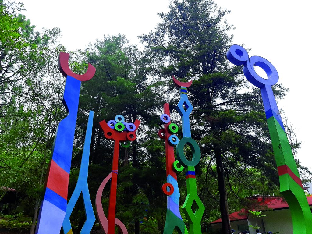 Una placa metálica ya afectada por el tiempo da cuenta de la artista. La obra, hecha de cemento y metal, es visible por su gran tamaño, pero resalta sobre todo por su feliz colorido y la evocación de una serie de bastones indígenas como reminiscencia de las antiguas culturas de México. Se trata de la artista mexicana Marta Palau, y la obra referida se suma a las de ocho creadoras y creadores artísticos que se ubican en uno de los espacios verdes menos conocidos en Morelia. Fallecida el pasado 12 de agosto, la escultora, pintora, ceramista, tejedora y gestora cultural ha dejado éste y otros rastros artísticos y personales en Michoacán, estado con el que tuvo una cercanía muy especial como promotora de la cultura desde inicios de los ochenta.