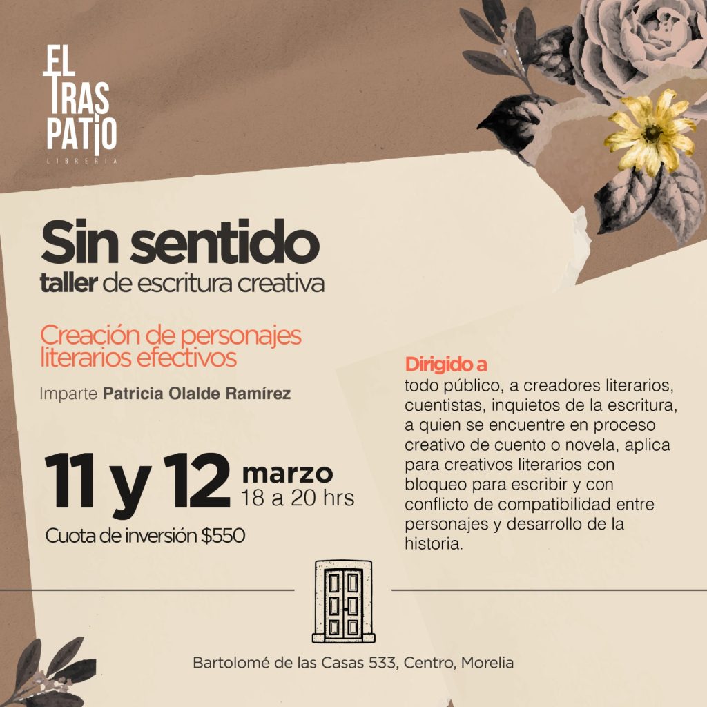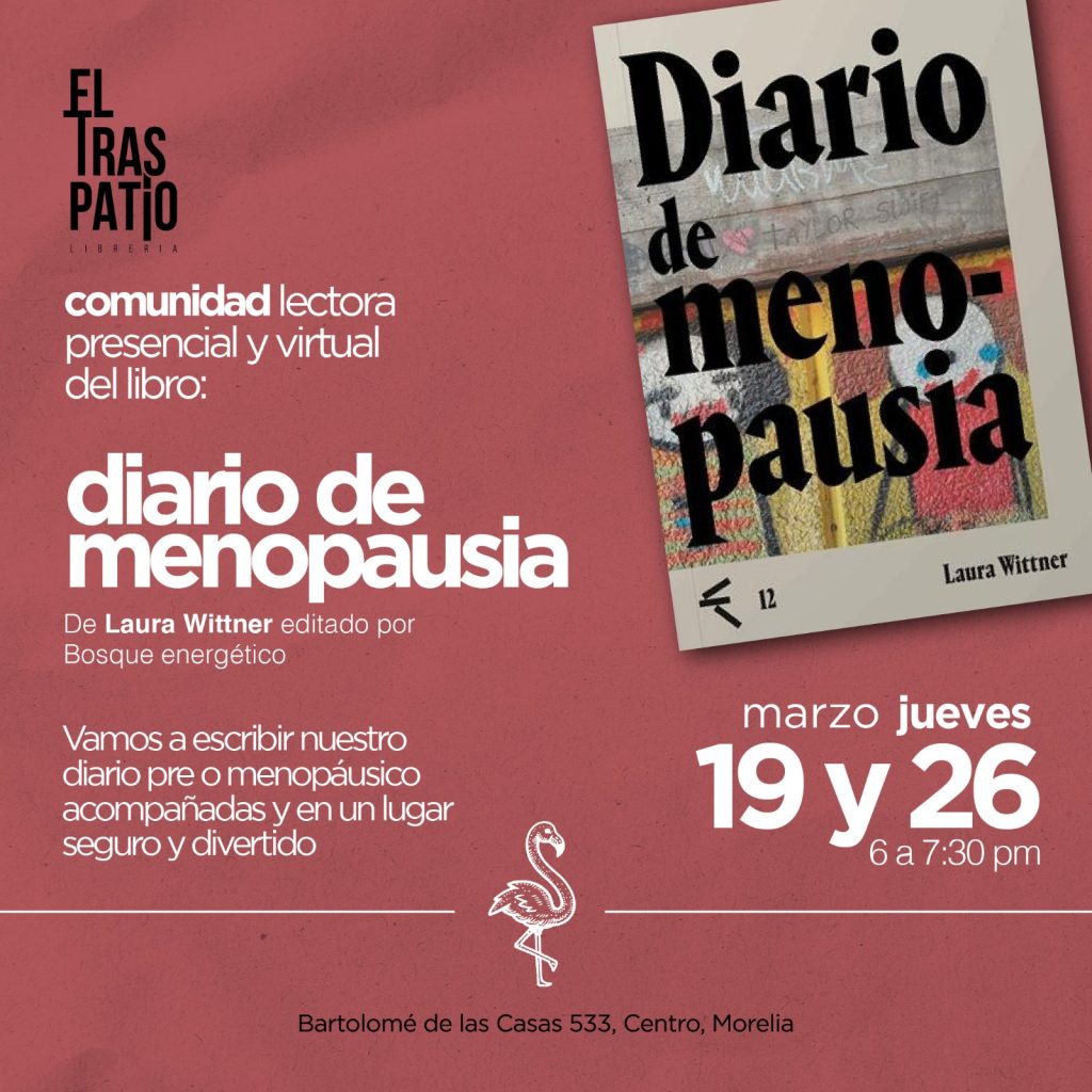 Taller de escritura creativa “Sin sentido” Creación de personajes literarios efectivos Imparte: Patricia Olalde Ramirez Dirigido a todo público Contenido: ¿Por qué los personajes son importantes? Personaje favorito, ¿qué lo hace especial? Ejemplos de personajes que funcionan, Tipos de personajes, Capas de personaje, Alineación con el binomio tema-trama 11 y 12 de marzo, de 6 a 8:00 pm Cuota de inversión $550 Club de lectura con este libro increíble Diario de menopausia Autora: Laura Wittner En nuestra comunidad charlaremos con la autora vía zoom, para comenzar escribiendo nuestro propio diario. El club no tiene costo, el libro se encuentra enTraspatio 19 y 26 de marzo, de 6 a 7:30 pm ¡Reserva tu lugar! Aquí algunas de las novedades semanales: El pato, la muerte y el tulipán Wolf Erlbruch FCE Gìsele Pelicot. Unhimno a la vida Editorial Lumen