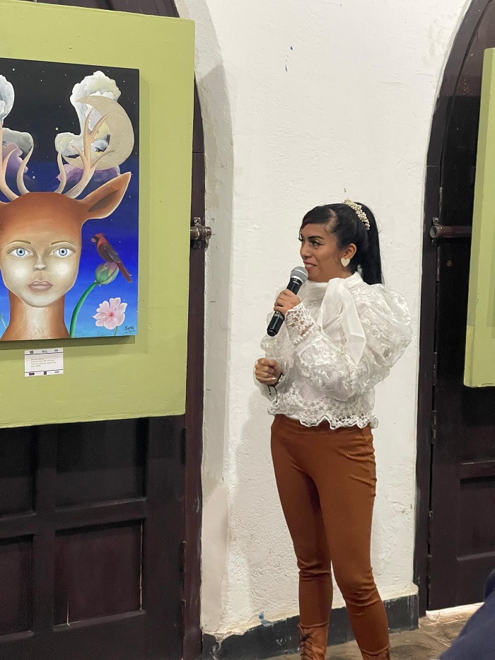 Martha Bernal, colabroadora de La Voz de Michoacán La artista Pamela Darinka, originaria de Uruapan, develó su exposición “Fémine Power” en el Ex Convento De Tiripetío; egresada de la Facultad Popular de Bellas Artes de la Universidad Michoacana de San Nicolás de Hidalgo, Darinka se sumergió a explorar la feminidad desde una mirada poderosa y poética, a través de criaturas fantásticas plasmadas en 20 obras que nacen del mundo interior de su creadora. En conversación con Darinka, nos manifestó el canon en el que está compuesta su exposición, Fémine Power invita a sus espectadores a adentrarse en un universo visual donde el imaginario femenino se expresa como parte de su resistencia e identidad. La exposición estará disponible al público, con entrada libre, hasta febrero de 2026. ¿Cómo nació la idea de Fémine Power? Las pinturas que hago son con un tono sumamente surrealista, porque me llegan las imágenes cuando estoy a punto de conciliar el sueño, entonces ya no estoy consciente, ni tampoco en el subconsciente, me levanto y hago rápidamente el boceto. Ya tenía una serie de imágenes, y dije “ay, bueno vamos a hacer una colección”, así es como va surgiendo esta serie de 20 obras; hay tres obras que son a partir de un proceso catártico, no provenientes de estos sueños, sino de, etapas de mi vida que me ha servido pintar para poderlo canalizar de otra manera. ¿Cómo defines lo femenino en tu obra y qué deseas que el público sienta al verla? Me gusta mucho ver las reacciones de la gente sin que les explique la obra. Me encantaría que se sintieran identificados con ellas, trato de que vean que la belleza y la fortaleza de la mujer se expresa de múltiples formas, en este sentido con múltiples seres; uno de los cuadros que definen más este tipo de mensajes es uno en el que quise aprovechar a esta filosofía japonesa kintsugi, cuando hay un recipiente roto que no se desecha, si no que en sus grietas se le pone oro, y tiene una trascendencia mayor, creo que eso nos pasa mucho en la vida. ¿Hay alguna obra dentro de esta exposición que tenga un significado especial para ti? Es bien difícil seleccionar solo una, la exposición está dividida básicamente por secciones de colorimetría, hay una sección de colores cálidos, otra de colores neutros como negros, y una más de colores verdes, entonces tengo como mis favoritas de cada sección: de la sección de los colores azules, “sirena cósmica” me gusta mucho; de la sección de los verdes, está “salida de tus sueños” creo que ese título podría simplificar mucho cómo realizo mi trabajo; y de la sección de los colores neutros, “kintsugi valquiria”, que es de esta filosofía japonesa, de cómo después de algún acontecimiento fuerte, no terminamos siendo los mismos, sino pues nos transforma, y espero que nos transforme para bien. ¿Qué esperas que quienes visiten la exposición se lleven consigo al salir de ella? Que quien vaya se anime a expresar con dibujo, con pintura, porque finalmente el arte nos permite expresar todo eso que no se puede decir con palabras; creo que eso ayuda mucho para que se atrevan a hacerlo, porque a veces se pone uno mismo esas barreras, como decir “no soy bueno dibujando, o no soy bueno pintando”, pero tienen otras habilidades para poder expresar los sentimientos.