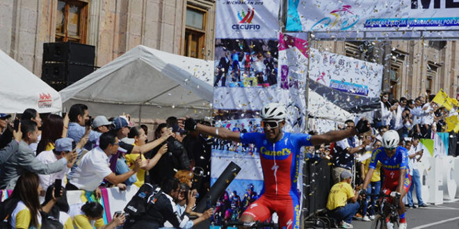 Sara Pulido / La Voz de MichoacánMorelia, Michoacán. El equipo Canel's Specialized hizo el 1-2 dentro de la primera edición de la Carrera Ciclista Internacional por la Paz "Ruta Monarca" gracias a la victoria del poblano Eduardo Cote, que cruzó la meta en primer lugar, seguido por su compañero Efrén Santos, mientras que el tercero lo obtuvo Orlando Garibay, de Tennis Stars. El recorrido de 210 kilómetros comprendió la visita de cinco municipios, entre ellos Charo, Indaparapeo, Queréndaro, Zinapécuaro y Ciudad Hidalgo. Silvano Aureoles entregó el premio al ganador. Foto, Sam Herrera Jr. Fue el equipo potosino Canel's Specialized el que dominó esta primera edición de la carrera, cuya ceremonia de premiación se celebró en las inmediaciones de Palacio de Gobierno, en el primer cuadro de la capital michoacana, encabezada por el mandatario estatal, Silvano Aureoles Conejo, quien hizo entrega al ganador absoluto de un cheque por 120 mil pesos.