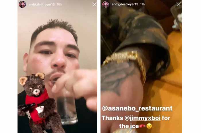 El Universal/La Voz de Michoacán.México. Andy Ruiz come caviar, toma tequila, juega con camarones vivos mientras presume sus costosas joyas nuevas. Mientras el mundo del boxeo de los pesos completos se mueve al rededor de los británicos Tyson Fury y Anthony Joshua, el mexicano Andy Ruiz sigue disfrutando los millones de dólares que ganó el año pasado. Ruiz, quien en diciembre ofreció una exhibición vergonzosa contra Joshua, mostró en redes sociales su nuevo brazalete de lujo en una cena en la que comió caviar y se dio el tiempo de jugar con camarones vivos. El mexicano mantiene su vida de opulencia que consiguió gracias al par de peleas que protagonizó con Joshua en 2019. En su cuenta de Instagram, Ruiz presumió su nuevos dientes blanco perla Después de su entrevista de televisión, el boxeador regordete publicó una serie de snaps con sus 1,6 millones de seguidores en Instagram. El primer clip mostraba su brazalete de diamantes grueso, dos anillos de diamantes y dos enormes collares de diamantes. También tomó algunos tragos de tequila y brindó por sus aficionados. Durante la entrevista, Ruiz Jr dijo que está "listo" para luchar contra Tyson Fury si está de acuerdo en una pelea de trilogía con Deontay Wilder. Cuando se le preguntó por su reacción a la victoria de Fury,dijo: "Creo que Tyson Fury hizo un trabajo increíble.
