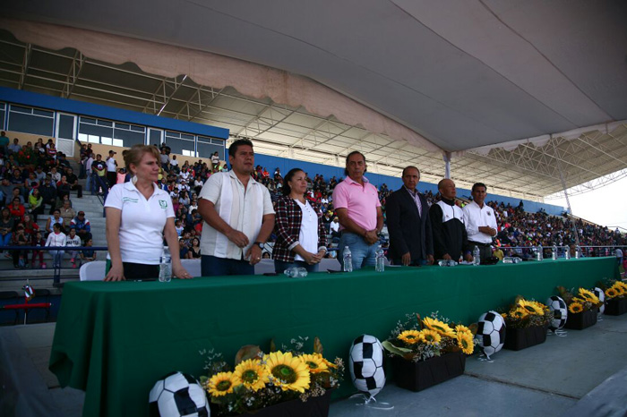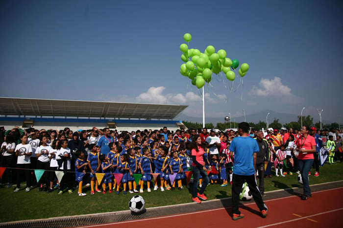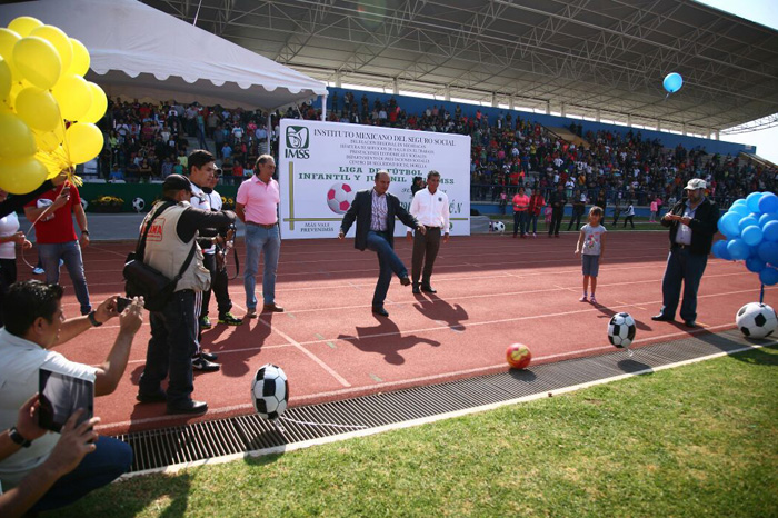 Sara Pulido/La Voz de Michoacán Morelia, Michoacán. En medio de una gran fiesta deportiva, se llevó a cabo la inauguración de la temporada 2017-2018 de la Liga de Futbol del IMSS, competencia en la que este año participarán cerca de 8 mil 500 deportistas desde los 4 años de edad y en ambas ramas. El estadio universitario de Morelia fue la sede de este evento. Gabriel Prado Fernández, encargado de la Dirección de Prestaciones Económicas y Sociales del IMSS, además de Roberto Romero, en calidad de representante de gobierno del estado y el regidor Félix Madrigal, por parte del municipio fueron los encargados de encabezar la inauguración de la temporada número 38 de esta liga. Este año participarán 311 equipos de 82 clubes con edades desde los 4 años en rl caso de la rama varonil y Libre en damas. Será la próxima semana cuando arranquen los duelos en el terreno de juego para esta nueva versión de la Liga. Foto: Víctor Ramírez.