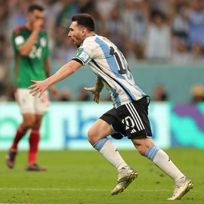 EFE / La Voz de Michoacán Doha, Catar. Con el gol y la asistencia obtenidas ante México, Leo Messi igualó este sábado el número de goles y de asistencias de Diego Armando Maradona, al que alcanzó en el de partidos jugados nada más echar el balón a rodar en el estadio Lusail de Qatar 2022. Messi marcó el primer tanto del choque contra México, a la hora de partido con un tiro desde la frontal. Después, en el tramo final, asistió a Enzo Fernández que redondeó la primera victoria de Argentina en Qatar 2022. Des esta forma, Messi firmó su octavo gol, el segundo en Qatar, en una fase final de un Mundial, igual que Maradona en los cuatro Mundiales que disputó. Queda a dos de Gabriel Batistuta que con diez es el máximo anotador de Argentina en los Mundiales. Además, el jugador del París Saint Germain, que asistió a Enzo Fernández se convirtió en el único futbolista en lograr alguna asistencia en cinco campeonatos del Mundo.