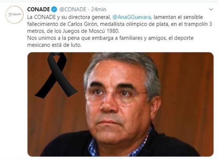 Redacción / La Voz de Michoacán Ciudad de México. El medallista olímpico mexicano Carlos Girón se encuentra hospitalizado a consecuencia de una neumonía que tiene al exclavadista en estado grave. Luego de que varios medios dieran la noticia de su muerte, tras un tuit de la Conade que lo aseguraba, su hija Silviana GirónUribe, aclaró que su padre está vivo, aunque muy delicado. "El pronóstico no es favorable, pero sigue con vida", señaló Notimex. A través de su cuenta de Twitter, la Conade había señalado que el medallista había fallecido, pero minutos después borró el tuit. El Instituto Mexicano del Seguro Social (IMSS) dio a conocer que el exclavadista se encuentra en uno de sus hospitales recibiendo atención médica en la Ciudad de México y que su estado de salud es reservado. https://twitter.com/Tu_IMSS/status/1215059084661137415 El presidente de la Asociación de Medallistas Olímpicos Mexicanos, Daniel Aceves comunicó que Girón de 65 años de edad, se encontraba en el Centro Médico de la Raza desde finales de año. "Lo que conocemos a través de su familia es que está grave estable y sin responder a los antibióticos, esperemos que el próximo parte médico lo ubique en mejor cuadro diagnóstico", declaró Aceves. Girón se colgó la medalla de plata en el trampolín 3 metros de los Juegos Olímpicos de Moscú 1980. Aquella competencia causó controversia debido a que los jueces beneficiaron al local Aleksander Portnov. "Me acuerdo que en la penúltima ronda me alcanzó Portnov. La pelea ya sólo era de los dos al estar tan adelantados. El oro era para él o para mi. Y llegó el momento decisivo para él. Segundos antes se registró un récord en la alberca que causó un alarido que a Portnov no le importó puesto que se lanzó. Para su mala fortuna falló el clavado, pero los delegados de su país protestaron argumentando que un grito lo sacó de concentración. "Con la presión del público, el clavado se repitió y lo ejecutó de buena forma para conseguir la medalla de oro", recordó Girón en una entrevista publicada por EL UNIVERSAL Deportes hace meses. Se espera que durante el transcurso del día se emita más información sobre la evolución de la salud de Carlos Girón. Con información de Notimex y El Universal.