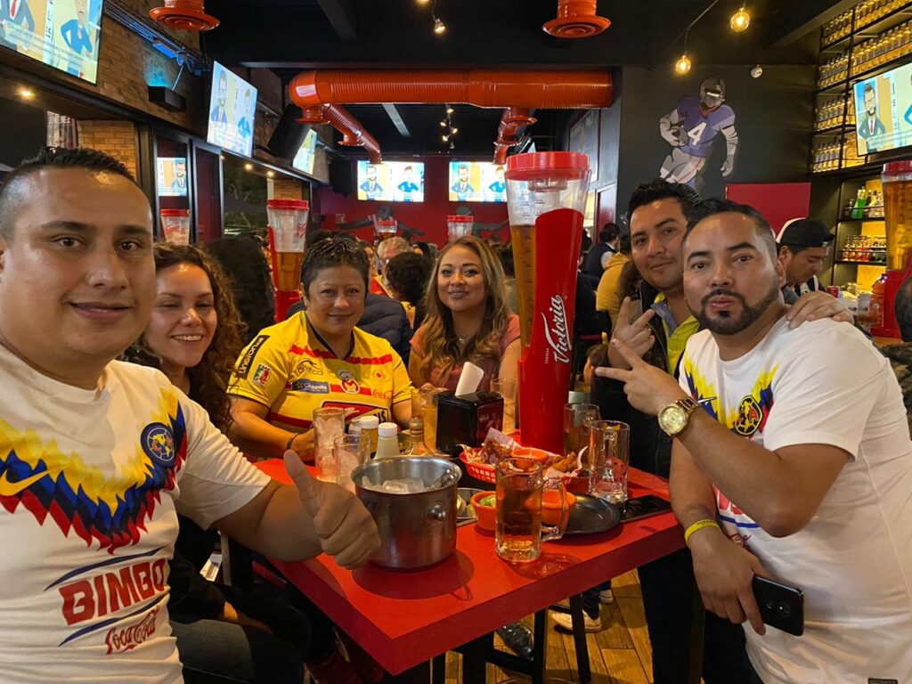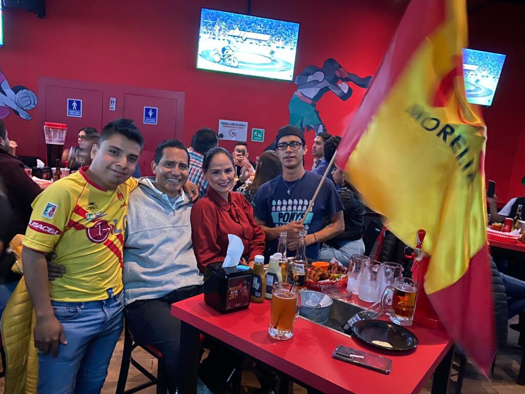 Redacción / La Voz de Michoacán. Morelia, Michoacán. Bares, restaurantes y la Plaza Melchor Ocampo de la capital michoacana son punto de reunión de la afición rojiamarilla y azulcrema para el encuentro de esta noche entre ambas escuadras. Foto: Enrique Santiago Foto: Enrique Santiago. Foto: Enrique Santiago. Foto: Enrique Santiago. Foto: Enrique Santiago.