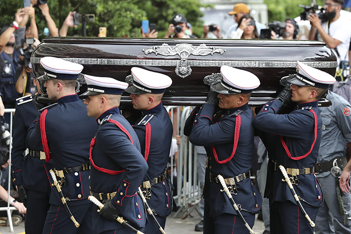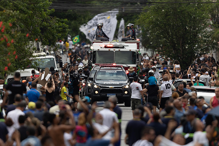 EFE / La Voz de Michoacán El exfutbolista brasileño Edson Arantes do Nascimento 'Pelé', fallecido el jueves pasado a los 82 años de edad, fue enterrado este martes en el Memorial Necrópolis Ecuménica de Santos, en una ceremonia reservada a familiares y amigos próximos. 'O Rei' recibió sepultura después de un multitudinario cortejo fúnebre por las calles de Santos, la ciudad del litoral de Sao Paulo donde completó la mayor parte de su carrera deportiva y se transformó en un icono de talla mundial. El antiguo delantero de la Canarinha, el único en ganar tres mundiales como jugador, descansa en el primer piso de este cementerio vertical con aspecto de un bloque de apartamentos de playa, considerado el más alto del mundo. Foto: EFE A la entrada del espacio donde se encuentran sus restos mortales, que fueron embalsamados, hay dos estatuas doradas de Pelé, idénticas, en las que aparece vestido de corto, de brazos cruzados, sonriente y con la pierna derecha sobre una pelota. Fuentes del centro señalaron a EFE que la previsión es que el mausoleo se abra al público próximamente. Miles de personas ocuparon este martes las calles de Santos para dar el último adiós a su mayor ídolo, que murió el pasado 29 de diciembre en un hospital privado de Sao Paulo por daños derivados del cáncer de colon que sufría desde 2021. Antes, tuvo lugar un velatorio de un día sobre el césped del estadio Vila Belmiro, la casa del Santos, donde acudieron unas 230.000 personas, según informó el club albinegro. Hasta allí se acercaron diversas autoridades, entre ellas el jefe de Estado brasileño, Luiz Inácio Lula da Silva, que asumió su mandato el domingo; y el presidente de la FIFA, Gianni Infantino. Foto: EFE