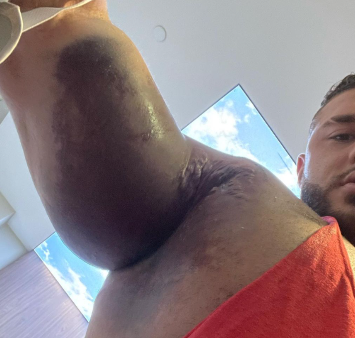 IMÁGENES SENSIBLES | Quiso levantar más peso del que podía y revienta su pectoral