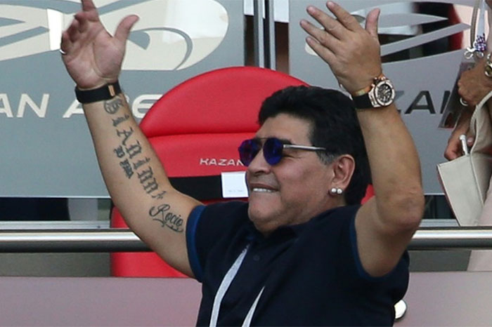 El Universal/La Voz de Michoacán Sinaloa. A pesar de las decenas de canciones que hacen homenaje a Diego Armando Maradona, no podría faltar una al estilo sinaloense. “El Diego de Sinaloa”, se titula la pieza con la que Dorados recibe esta noche a su entrenador, que debutará en el estadio Banorte contra Cafetaleros de Tapachula, en duelo correspondiente a la octava fecha del Apertura 2018 de la Liga de Ascenso. “Millennial Music Revolution le da la bienvenida a Diego Armando Maradona con esta canción, ¡escúchala! #ElDiegoDeSinaloa”, publicó en redes sociales el Gran Pez respecto a la canción que es interpretada por Cristobal Laborín, de la Banda La Prendida de Sinaloa.