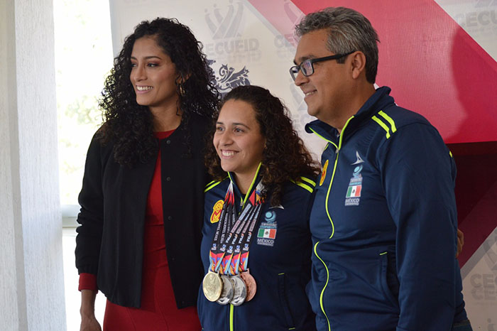Esmeralda Salgado / La Voz de Michoacán Morelia, Michoacán. Luego de su participación en el Mundial INAS 2017, celebrado en Aguascalientes, la nadadora Beatríz Reséndiz recibió un reconocimiento público de parte de la directora de Cecufid, Edna Díaz Acevedo, debido a su destacada participación, pues la michoacana acumuló cuatro de las cinco medallas para la delegación mexicana. Bety se colgó la medalla de oro en los 800 metros libres, después de vencer a Jade Lucy, de Australia por casi tres segundos, siendo la competencia más compleja; también se colgó dos preseas más de plata, y cerró la competencia con un bronce. En total fueron 15 países los que compitieron, el medallero lo encabezó Brasil, dejando a México en séptimo lugar por encima de España, Bélgica y otras potencias mundiales.
