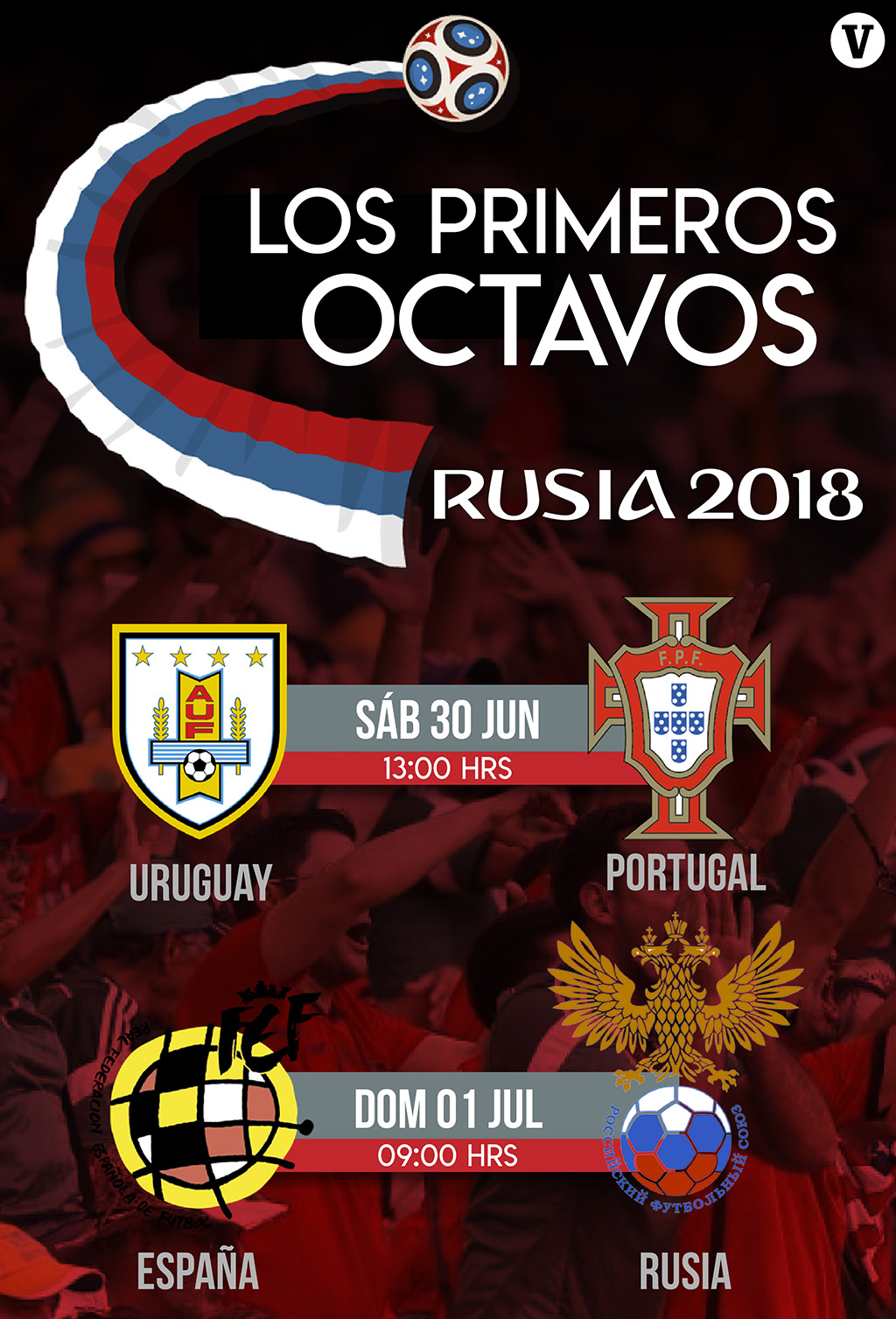 España iniciará su camino en los octavos de final ante Rusia, mientras que Portugal se medirá ante Uruguay.