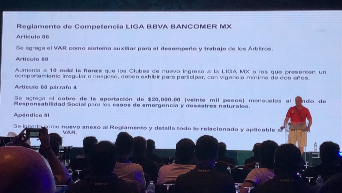 Agencias / La Voz de Michoacán Ciudad de México. Enrique Bonilla, Presidente de la Liga MX, informó la implementación del VAR (Video Assistant Referee) como un sistema auxiliar para el desempeño y trabajo de los árbitros para el torneo de Apertura 2018, a expensas de recibir la certificación de la FIFA y poderlo llevar a cabo. Además, Bonilla dio a conocer cambios en el reglamento de competencia que incluye una modificación a la fianza para los equipos que lleguen a la Liga MX, así como una aportación mensual de 20 mil pesos por equipo para un fondo de responsabilidad social para casos de emergencia y desastres naturales. El funcionamiento del VAR es sencillo. El primer paso lo da el árbitro o uno de sus asistentes ubicados en una sala de vídeo donde siguen el partido por televisión. Uno de los dos interpreta que hay una acción susceptible de ser revisada y avisa al otro. En ese momento, los asistentes de vídeo reproducen la acción por televisión una y otra vez e informan al árbitro principal de lo que han visto a través de los auriculares. Llegado a este punto es el propio colegiado quien debe tomar una decisión, dando por buena la opinión de sus asistentes o parando el partido para revisar él mismo la acción en un televisor colocado junto al terreno de juego. En teoría, todo este proceso no debe tardar más de dos minutos.