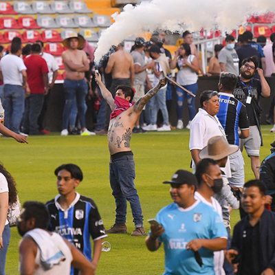 Redacción / La Voz de Michoacán Querétaro. La noche del sábado el futbol mexicano vivió uno de los momentos más negros en su historia, luego del brutal enfrentamiento entre aficionados de los clubes Querétaro y Atlas en el Estadio Corregidora, hechos que, hasta ahora, no han sido aclarados totalmente y dejan muchas dudas, entre ellas el papel de la policía y el personal de seguridad privada del recinto. La Fiscalía de Querétaro inició una investigación en torno a los hechos de violencia que, de momento, han dejado 22 heridos, algunos de ellos de gravedad, y mientras se deslindan responsabilidades, en redes sociales usuarios han cuestionado el papel de los elementos de seguridad en el inmueble, pues circulan videos en los que no solo no se ve que contengan la gresca, sino que hasta participan. En una grabación se observa a un presunto elemento de seguridad, sin que hasta ahora se aclare si es policía o trabajar del estadio, quien abre una de las rejas que separan las áreas del recinto, lo que permite a los aficionados del club Querétaro pasar a donde estaban los seguidores del Atlas. Cómo llegaron los aficionados al terreno de juego y a prácticamente todas las áreas del estadio sigue siendo una de las preguntas de usuarios de redes sociales, que han expresado su indignación por los hechos. En otro video se observa a un policía hablar tranquilamente por teléfono mientras atrás corren los aficionados, durante la gresca entre los seguidores de ambos equipos. https://twitter.com/GDLesdeATLAS/status/1500375715908403205 Otros usuarios acusaron directamente a los elementos de seguridad privada del estadio de participar en la agresión a los seguidores del club jalisciense, según se observa en otras grabaciones del momento del enfrentamiento. https://twitter.com/Alejo_Pinto17/status/1500485312019144709 En otros videos se observa a los policías contemplar inmóviles el momento en que inicia la agresión en las gradas, que después pasó a los pasillos y a la cancha. https://twitter.com/Bedolla_Dep/status/1500355507810451458 Toda la actividad en la Liga MX fue suspendida este domingo y las autoridades estatales ya comenzaron la investigación para deslindar responsabilidades.