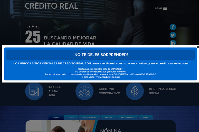 Notimex/ La Voz de Michoacán Ciudad de México. La Comisión Nacional para la Protección y Defensa de los Usuarios de Servicios Financieros (Condusef) emitió una nueva alerta contra la supuesta empresa "Tú Crédito Real", la cual ofrece falsos préstamos por hasta cinco millones de pesos sin ser una institución financiera. En un comunicado, la entidad supervisora destacó que esta fraudulenta compañía oferta créditos por medio de Internet, haciéndose pasar por la empresa Crédito Real, la cual es una Sociedad Financiera de Objeto Múltiple (Sofom) debidamente regulada ante la dependencia y la Comisión Nacional Bancaria y de Valores (CNBV). Detalló que entre los requisitos que exige la apócrifa compañía a los solicitantes de crédito, está el llenado de solicitudes con información personal, laboral, de domicilio, así como recibos de pago y documentación oficial como la Credencial de Elector, acta de nacimiento y Clave Única de Registro de Población (CURP), entre otros. Resaltó que Crédito Real fue la que dio aviso al organismo del actuar de esta falsa institución financiera, luego de recibir el reclamo de un usuario a quien le exigieron cierta cantidad de dinero para el otorgamiento del préstamo solicitado, el cual no le fue entregado ni devuelto. Ante ello, la Condusef pidió a la ciudadanía verificar ante la institución si las empresas oferentes de crédito están debidamente autorizadas, y evitar proporcionar documentos personales o de tarjetas de crédito y débito antes del otorgamiento de préstamos.