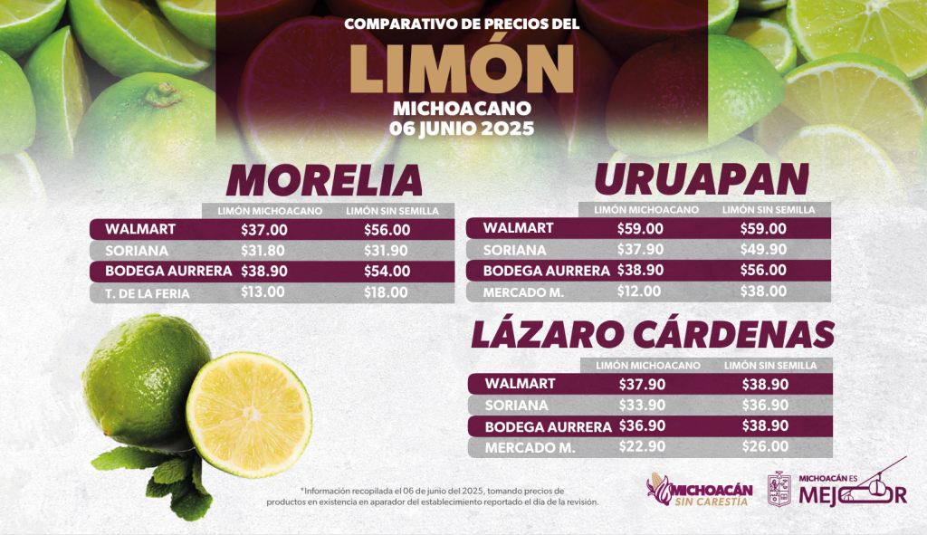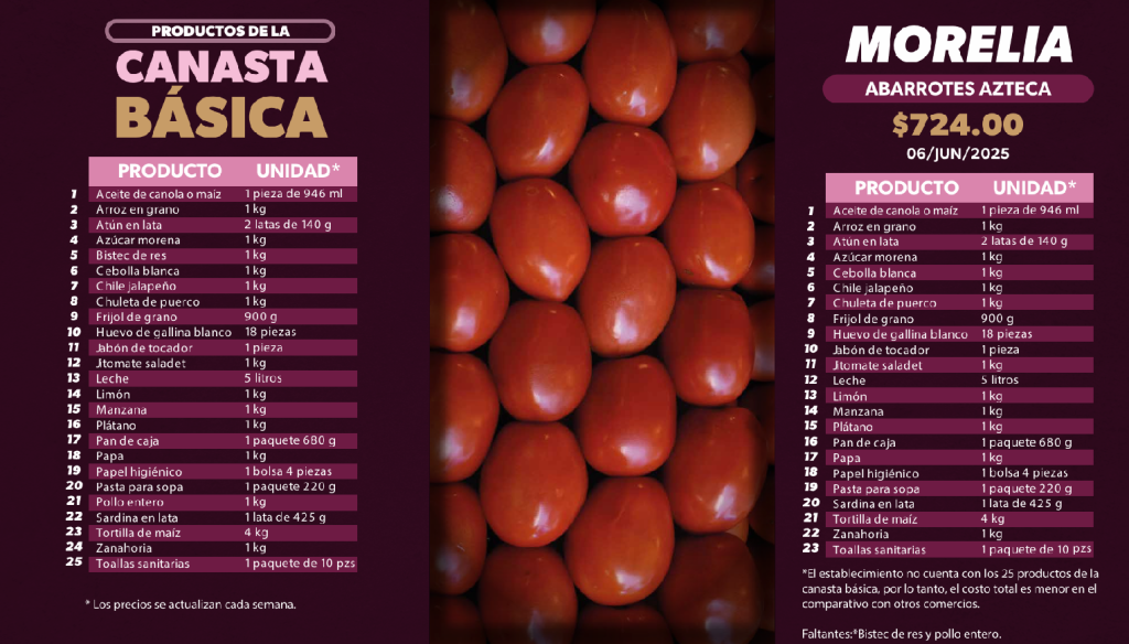 Redacción / La Voz de Michoacán Morelia, Michoacán. Gastar menos de mil pesos para comprar 25 productos de primera necesidad es posible en el Tianguis de la Feria, que se mantiene como el sitio más económico para surtir en la capital michoacana. Le siguen las cadenas comerciales Chedraui y Soriana, a un costo que no rebasa los mil 100 pesos. De acuerdo con el comparativo que la Secretaría de Desarrollo Económico (Sedeco), con información recopilada al 6 de junio de 2025 en 27 establecimientos de 6 municipios michoacanos, el Mercado Independencia es el más caro para comprar la canasta básica en Morelia, a un precio de mil 272 pesos, mientras que en Walmart de Zamora y Lázaro Cárdenas y en los mercados municipales de Zitácuaro y Apatzingán el consumidor tiene que pagar más de mil 300 pesos. PRECIOS EN MORELIA • Tianguis de la Feria: $943.50 • Chedraui: $1,028.30 • Soriana: $1,056.83 • Mercado de Abastos: $1,160.00 • Merza: $1,182.37 • Bodega Aurrera: $1,199.00 • Mercado San Juan: $1,232.50 • Walmart: $1,232.50 • Mercado Independencia: $1,275.00 PRECIOS EN CINCO CIUDADES MÁS Zamora • Mercado Municipal: $1,215.48 • Soriana: $1,278.50 • Merza: $1,287.23 • Aurrera: $1,321.60 • Walmart: $1,352.20 Uruapan • Aurrera: $1,148.00 • Soriana: $1,224.80 • Walmart: $1,233.90 • Mercado Municipal: $1,281.50 Lázaro Cárdenas • Aurrera: $1,268.20 • Soriana: $1,289.80 • Mercado Municipal: $1,366.00 • Walmart: $1,372.40 Zitácuaro • Aurrera: $1,223.00 • Super Ché (Chedraui): $1,242.50 • Mercado Municipal: $1,315.00 Apatzingán • Aurrera: $1,193.70 • Mercado Municipal: $1,305.00