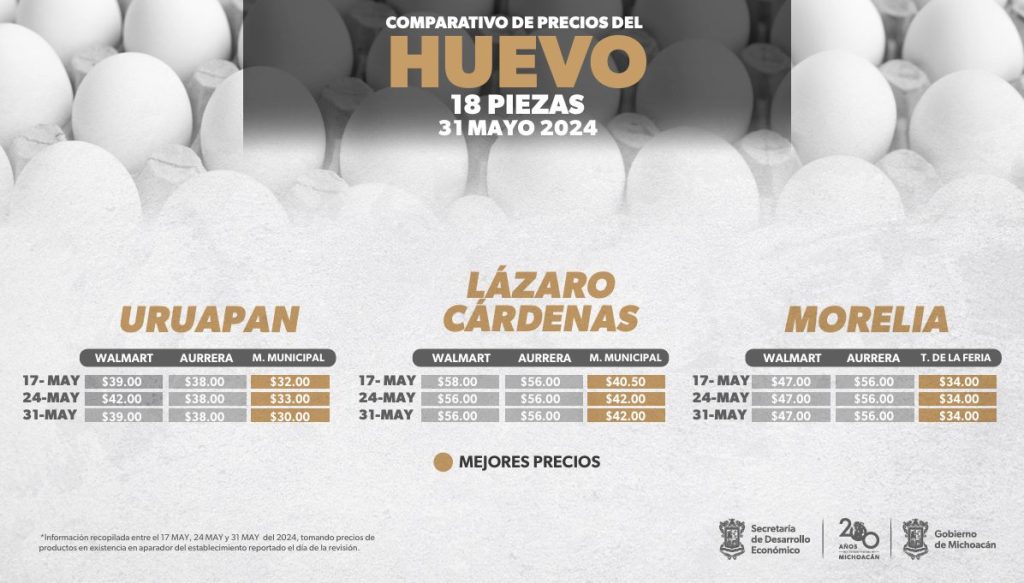 Redacción / La Voz de Michoacán Morelia, Michoacán. Para surtir 25 productos de la canasta básica comparados por la Secretaría de Desarrollo Económico (Sedeco) estatal, el Tianguis de la Feria es el lugar más barato en Morelia, seguido, en esta ocasión, por el Mercado de Abastos, a un precio que no rebasa los mil pesos. En contraparte, los sitios más caros son el Mercado San Juan y La Blanquita, con precios de mil 209 pesos y mil 205 pesos, respectivamente. Y de más establecimientos analizados en cinco municipios más, en Zamora y Zitácuaro la canasta básica también cuesta menos de mil pesos. PRECIOS EN MORELIA • Tianguis de la Feria: $935.50 • Mercado de Abastos: $956.45 • Chedraui: $1,031.75 • Soriana: $1,076.30 • Super Regalo de Dios (colonia Vasco de Quiroga): $1,116.80 • Aurrera: $1,133.60 • Mercado Independencia: $1,145.00 • Merza: $1,157.80 • Walmart: $1,191.40 • La Blanquita: $1,205.00 • Mercado San Juan: $1,209.00 PRECIOS EN CINCO MUNICIPIOS MÁS Zamora • Soriana: $979.20 • Aurrera: $997.90 • Merza: $1,044.90 • Walmart: $1,222.40 • Mercado Municipal: $1,255.00 Uruapan • Aurrera: $1,131.00 • Mercado Municipal: $1,142.50 • Walmart: $1,262.50 • Soriana: $1,284.50 Lázaro Cárdenas • Mercado Municipal: $1,216.80 • Aurrera: $1,267.00 • Soriana: $1,268.10 • Walmart: $1,339.40 Zitácuaro • Aurrera: $ 939.90 • Chedraui (Super Ché): $ 944.00 • Mercado Municipal: $ 1,218.00 Apatzingán • Aurrera: $1,188.60 • Mercado Municipal: $1,220.00