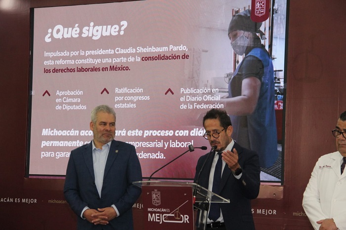 Ashley Rodríguez / La Voz de Michoacán Morelia, Michoacán.- Ante la aprobación por parte del Senado de la República, de la reforma que reduce de manera gradual la jornada laboral semanal de 48 a 40 horas, Claudio Méndez, secretario de Desarrollo Económico de Michoacán señaló que en la entidad se tendrá diálogo permanente con los empresarios. Explicó además, en conferencia de prensa, en qué consiste la transición y recordó que desde 2023 se realizaron foros parlamentarios abiertos para ver “como podíamos entre todos establecer una estrategia para bajar la jornada laboral semanal a 40 horas” terminando así con las 48 horas que se trabajan actualmente. “En el 2025 se reforzó por parte de Gobierno Federal este respaldo para reducción de la jornada laboral, se hicieron consultas con el sector empresarial, distintos sindicatos, y es como se llegó a esta propuesta, que fue aprobada el 11 de febrero del 2026 en el Senado”, señaló. Puntos para entender la Reforma Laboral En el encuentro con medios encabezado por el gobernador Alfredo Ramírez Bedolla, el secretario de Desarrollo Económico detalló los derechos con los que contarán las y los trabajadores: • -Se mantiene el límite de 8 horas diarias. • -Una jornada de 40 horas equivale a 5 días laborales de 8 horas. • -Se garantiza al menos un día de descanso. • -La reducción no implica disminución salarial ni de prestaciones, de hecho, al contrario, lo que antes ganaban trabajando 48 horas, en el 2030 lo van a ganar trabajando 40 horas. Fortalece el salario mínimo, este es de los grandes logros de esta propuesta. La transición será progresiva para permitir adaptación económica, para brindar certidumbre a empresas, especialmente a mipyms, y estabilidad al mercado laboral:2027 – 46 horas2028 – 44 horas2029 – 42 horas2030 – 40 horas HORAS EXTRAS La reforma constitucional al artículo 123 ajusta el límite del trabajo extraordinario conforme a la reducción de la jornada ordinaria. • - Hasta 12 horas extraordinarias por semana.• - Máximo 4 horas por día, en 4 días.• - Se incrementa el salario de tiempo extra de 9 a 12 horas semanales. Se paga el doble a aquellas personas que trabajen después del 2030 de la hora 41 ya se paga el doble y después de que llegue a 12 horas se paga el triple. Foto: Víctor Ramírez • Dentro del límite 100% adicional (doble).• Si se excede 200% adicional (triple): El secretario advirtió que está prohibido el trabajo extraordinario para menores de 18 años. La reforma laboral, dijo, beneficiará aproximadamente al 64% de las personas trabajadoras que hoy laboran más de 41 horas (13.4 millones de trabajadores), mejora el equilibrio entre vida y trabajo; reducirá el agotamiento y estrés laboral y fortalecerá la productividad. ¿Qué sigue? Impulsada por la presidenta Claudia Sheinbaum Pardo, esta reforma constituye una parte de la consolidación de los derechos laborales en México y lo que continúa es la aprobación en Cámara de Diputados; la ratificación por congresos estatales (aprobada cuando más del 51% de los congresos autorice) y finalmente la publicación en el Diario Oficial de la Federación. Claudio Méndez aseguró que Michoacán acompañará este proceso con diálogo permanente con el sector empresarial y laboral para garantizar una transición ordenada.