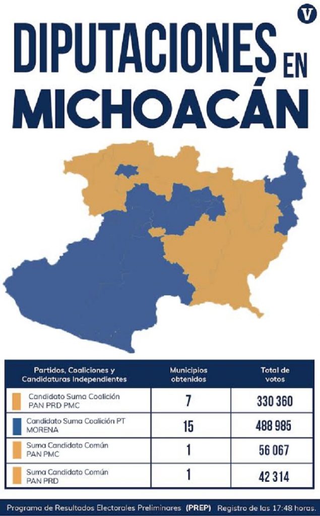 Morelia, Michoacán. Las cifras del Programa de Resultados Electorales Preliminares (PREP), muestran que Morena logró la mayoría de las diputaciones en el estado. Consulta aquí los resultados: http://prep2018iemmich.org.mx/#/A/DET/PC