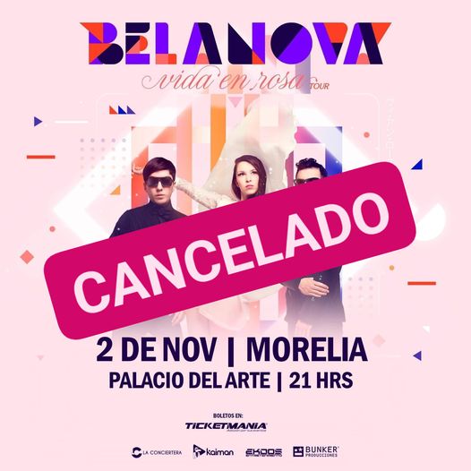 Morelia, Michoacán. La Banda de pop “Belanova” canceló recientemente el concierto en tierras michoacanas, luego de que en el mes de marzo anunciara su regreso a la ciudad, con fecha el 2 de noviembre en el Palacio del Arte.