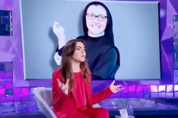 Durante algunos años, la monja se alejó de los escenarios, y ahora volvió a sorprender, pues reapareció sin hábito, pero vestida con un traje sastre color rojo y maquillada, pues abandonó la vida religiosa y actualmente vive en España.