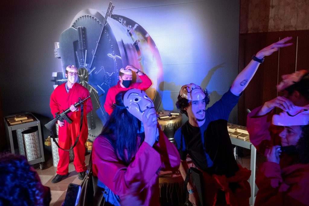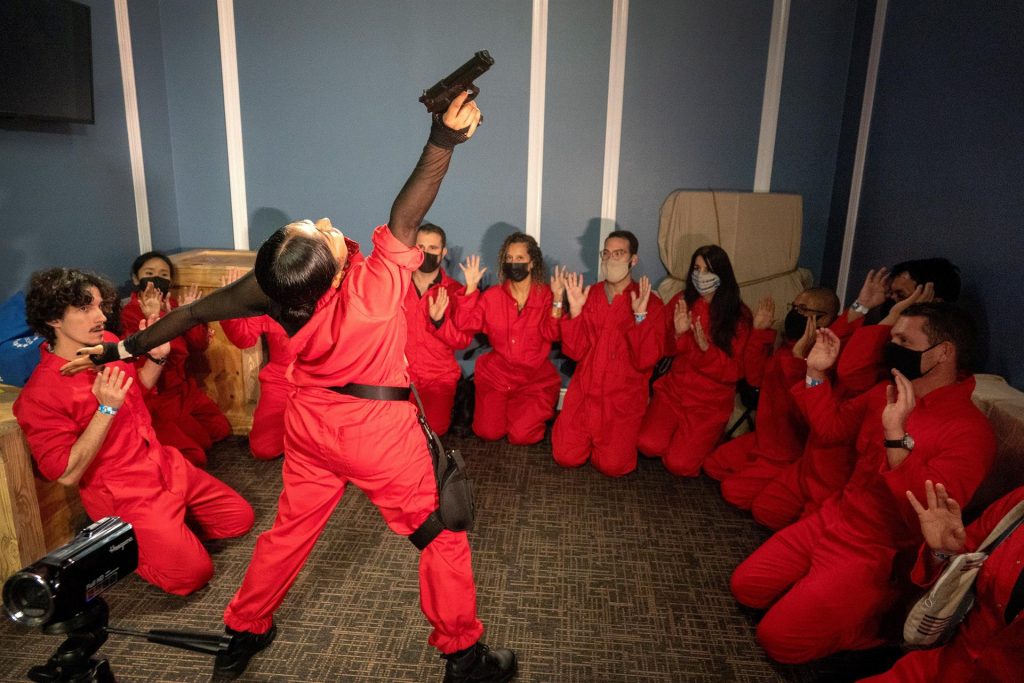 EFE / La Voz de Michoacán Miami. El histórico edificio Alfred I. duPont, en el centro de Miami (Florida), sirve de escenario para el debut en Estados Unidos de la atracción inmersiva dedicada a "La Casa de Papel", la serie española de Netflix convertida en fenómeno internacional y que en diciembre estrenará la segunda parte de su quinta y última temporada. Los seguidores de la serie que acudan a la instalación serán parte de La Banda y, enfundados en los icónicos uniformes rojos, participarán en un atraco de lingotes de oro para el que deberán sortear varios obstáculos y resolver pistas. Reclutados por Lisboa, el personaje interpretado por la actriz Itziar Ituño, quien aparece en un vídeo, los asistentes forman parte de un atraco con una línea argumental inspirada en la serie y que se adapta a la ciudad donde se monta la atracción. Foto: EFE. Acorde a su promesa de adrenalina, los asistentes interactuarán con actores reales, armas de fuego realistas y artilugios tecnológicos a lo largo de una experiencia teatral que se desarrolla en unos 600 metros cuadrados y que culmina en una bóveda asegurada con una puerta de casi 23 toneladas de peso. Unos 30 actores participan de la experiencia, que se desarrolla en un histórico edificio completado en 1939, que con sus 17 plantas fue en su momento el más alto de Miami, y que atrae la vista del visitante por sus paredes y pisos de mármol, rejas de hierro ornamentado y techos de ciprés pintados a mano. Foto: EFE. Un emplazamiento que se asemeja a la Casa de la Moneda de España, que fue el objetivo de los atracadores al mando de El Profesor en las dos primeras temporadas de la serie española, que llegó a ser la producción en lengua no inglesa más vista de la plataforma, hasta que fue desbancada por la coreana "El Juego del Calamar". "La respuesta ha sido muy positiva, el público sale encantando. Muchos nos comentan que es una experiencia que no han vivido antes y que incluso es algo nuevo para Miami", dijo a Efe Valeria Ventosa, directora de la puesta en escena de esta atracción que ha sido producida por la firma española Fever.