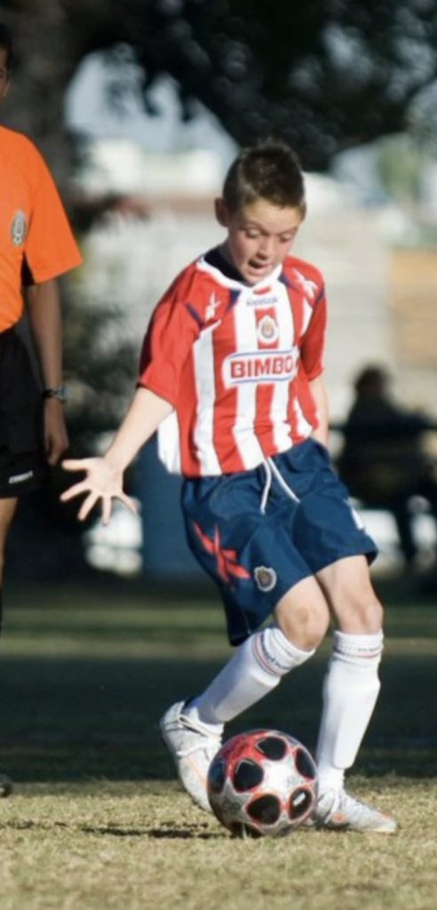 La imágen de Peso Pluma cuando era jugador de CHIVAS en fuerzas básicas