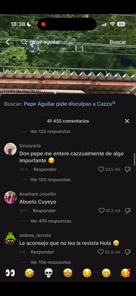 Redacción / La Voz de Michoacán Tras la confirmación del noviazgo de Christian Nodal y Ángela Aguilar, al cantante Pepe Aguilar le han llovido comentarios en relación a la controversia que rodea a su hija mientras este se encuentra de viaje por Japón. Con comentarios como “¿Ya vio el desvergue que está haciendo su morrilla don?”, “¿Ya no la va a correr si le llevan serenata?”, “¡Don Pepe márqueme, es urgente!” y “¡Le salió diablilla su angelita!”, sus seguidores han inundado sus redes sociales. Aunque el cantante no ha emitido declaraciones públicas al respecto, ha mostrado cierta actividad en sus redes sociales al responder algunos comentarios. El intérprete de “Por mujeres como tú” ha optado por responder con emojis de risa a aquellos que hacen referencia a la relación de su hija, como aquellos en donde le escriben “Felicidades a la madrastra señor Aguilar” y "Quédate en Japón, don Pepe, porque acá las cosas están fuertes". Así mismo, ha expresado su agrado hacia comentarios que frenan el hate en las redes y defienden el estilo de crianza del cantante, como aquellos donde los usuarios indican "Pero el señor no tiene la culpa de nada, él no falló como papá, los hijos cada quien su rollo". Sin embargo, recientemente el cantante del género regional ha bloqueado la posibilidad de que se realicen comentarios en sus publicaciones de Instagram, en un intento aparente por frenar la avalancha de críticas y de burlas.