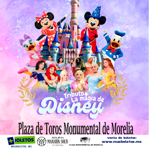 Redacción / La Voz de Michoacán Morelia, Michoacán. – La magia de Disney y su universo fantástico llegará para deleitar a chicos y grandes presentando su show por primera vez en la Plaza Monumental de Morelia, con un espectáculo de Mapping, fuegos artificiales y su icónico castillo acompañado de emblemáticos personajes, tales como Mickey Mouse y más de 30 personajes adicionales en escena. La cita será el día viernes 30 de mayo del año en curso en punto de las 20:00 horas en el recinto monumental de la capital michoacana (calle de Jesús Solórzano No.164, Col. Nueva Valladolid, Morelia, MICH 58190). Vive un show lleno de experiencias inolvidables acompañado de tus seres queridos y familiares, disfruta de este maravilloso show y deléitate en una noche espectacular llena de fantasía. Video: Cortesía A continuación, te dejamos un listado de precios para que puedas asistir a este magno evento por que estará por primera vez en Morelia: GOOFY $179.90 MXN ($150 precio + $29.9 c/. servicio) MULAN $238.20 MXN ($200 precio + $38.2 c/. servicio) FROZEN $296.50 MXN ($250 precio + $46.5 c/. servicio) DAISY $354.80 MXN ($300 precio + $54.8 c/. servicio) MINNIE $413.10 MXN ($350 precio + $63.1 c/. servicio) PRINCESAS $471.40 MXN ($400 precio + $71.4 c/. servicio) DONALD $588.00 MXN ($500 precio + $88 c/. servicio) MICKEY $762.90 MXN ($650 precio + $112.9 c/. servicio) Foto: Captura de pantalla Los boletos los puedes adquirir en sus dos modalidades oficiales en línea a través de: https://masboletos.com.mx/index.php?p=1&idevento=VHGNjbKXkO9ldlsUhpuT3zkcWkwesS5cet7graZH6Cg%3D Así como en Preventa Exclusiva en Mansión Solís, Taquilla De La Plaza, para más información puedes contactar al número: 4426277939 / M&G al 3311973510
