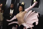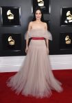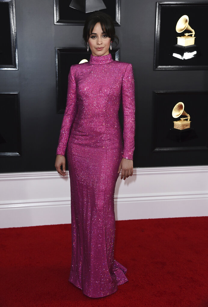La principal nominada Kacey Musgraves usó un vestido etéreo con cinturón en un tono nude con un audaz corpiño en forma de abanico, mientras que Camila Cabello lució cómoda en un vestido rosado manga larga con cuello alto.