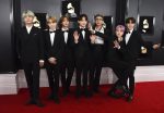 Los miembros del grupo de K-pop BTS aparecieron con esmóquines negros y los cabellos de colores, incluyendo morado y verde, mientras que Maren Morris llevó una enorme decoración tipo ala sobre el hombro de un vestido de flores con pronunciado escote.