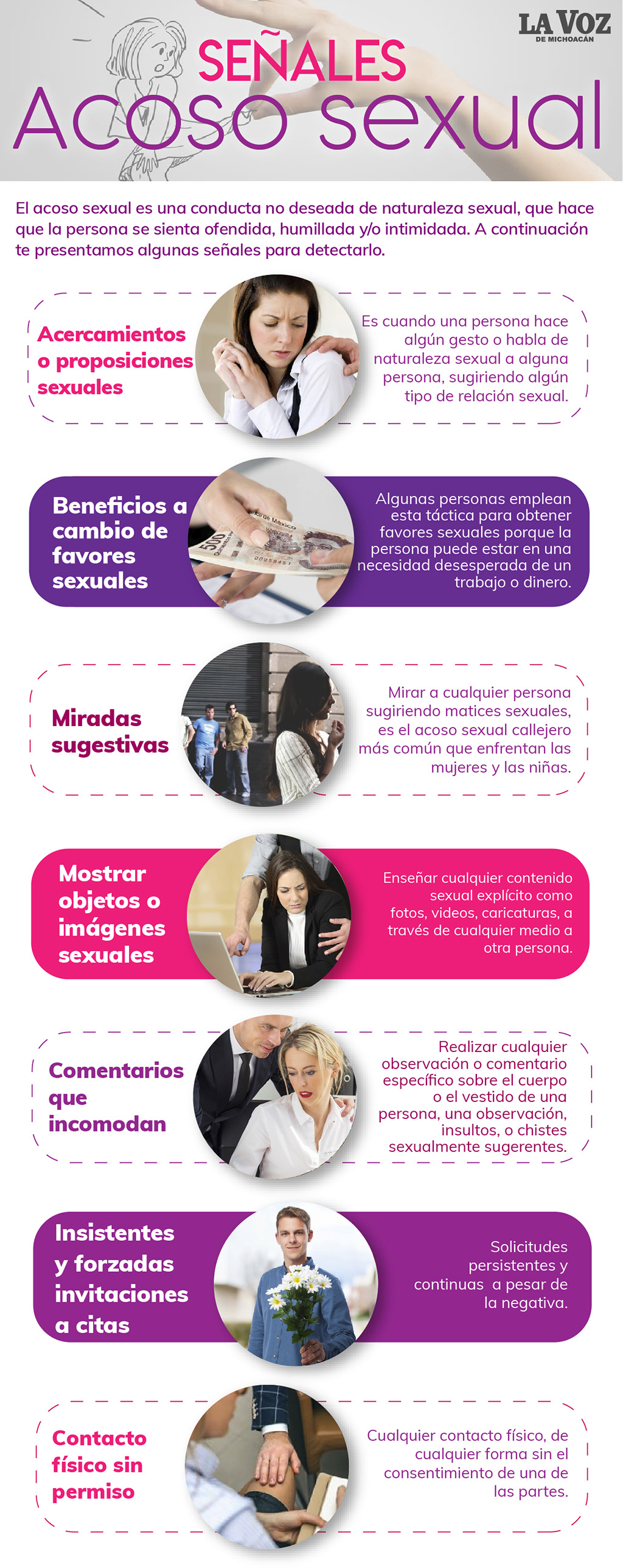 Redacción/La Voz de Michoacán Morelia, Michoacán. El acoso sexual se da en cualquier nivel social, y aunque es muy frecuente, a veces no sabemos cómo identificarlo. Te pasamos estos tips para que sepas detectarlo: