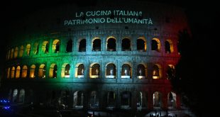 El Coliseo de Roma se ilumina para celebrar la cocina italiana como patrimonio de la humanidad